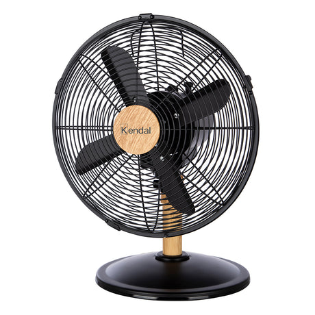 Ventilador de Mesa 12 Pulgadas Metal Madera Negro Potencia 45W