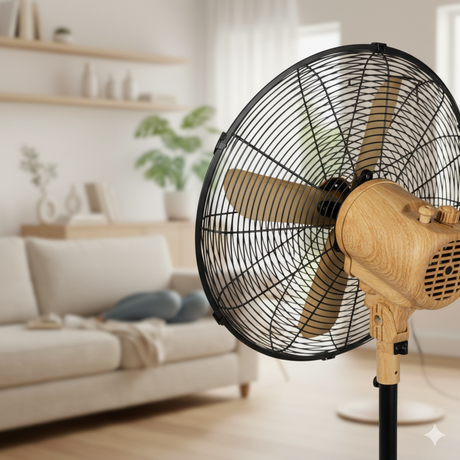 Ventilador de Pedestal 16 Pulgadas Metal Madera -Beige KZF-1616F Potencia 60W